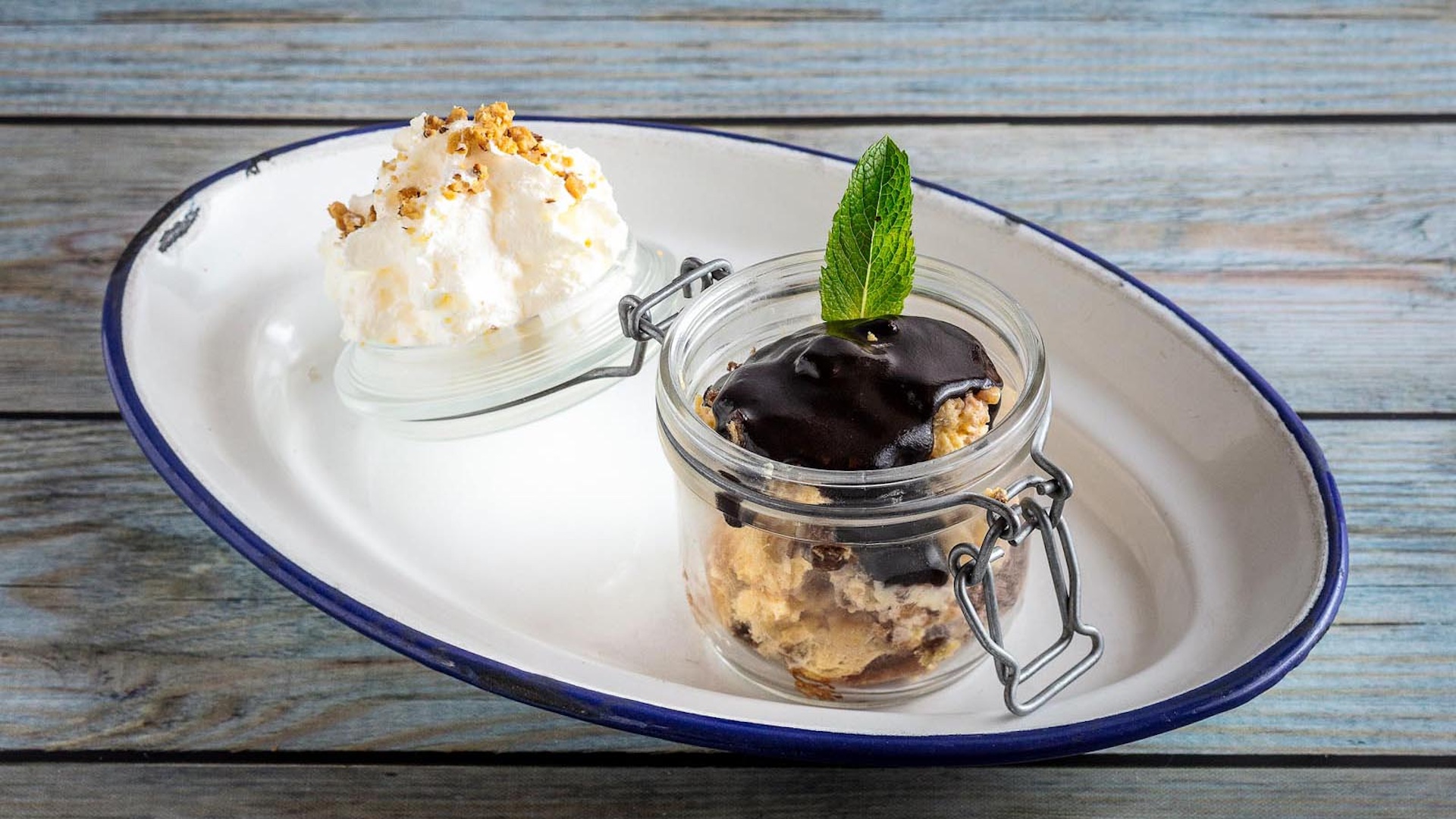 Tálaláskor tejszínhabot és csokoládét teszünk rá.
